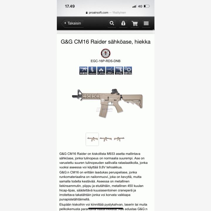 G&G CM16 Raider Ostettu Proairsoftista pari kk sitten! Pelattu 1päivä.