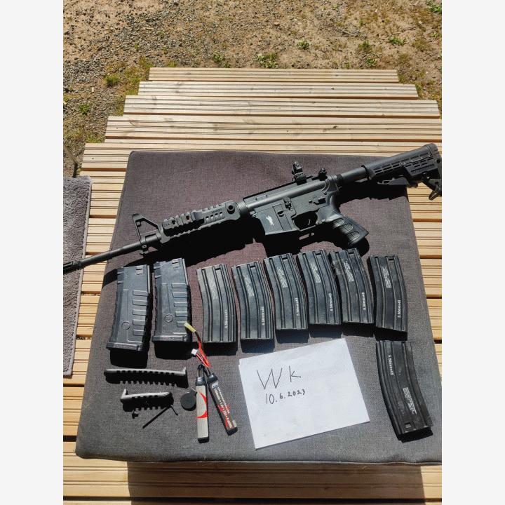 Siitä myyntiin CAA M4 on toimiva ja suhteellisen vähän käytetty myydään pois uuden aseen alta mukaan tulee akku, 9 midcap lipasta joista kaksi pitää yli sata kuulaa ja loput 7 noin 30 kuulaa. Kaikkien lippaiden pitäisi toimia. Jos jää kysyttävää niin kysykää. Ei lähetetä postitse pitää tulla hakemaan. Ja hinta ei ole kiveenhakattuYhteyden otot numeroon 0449723338