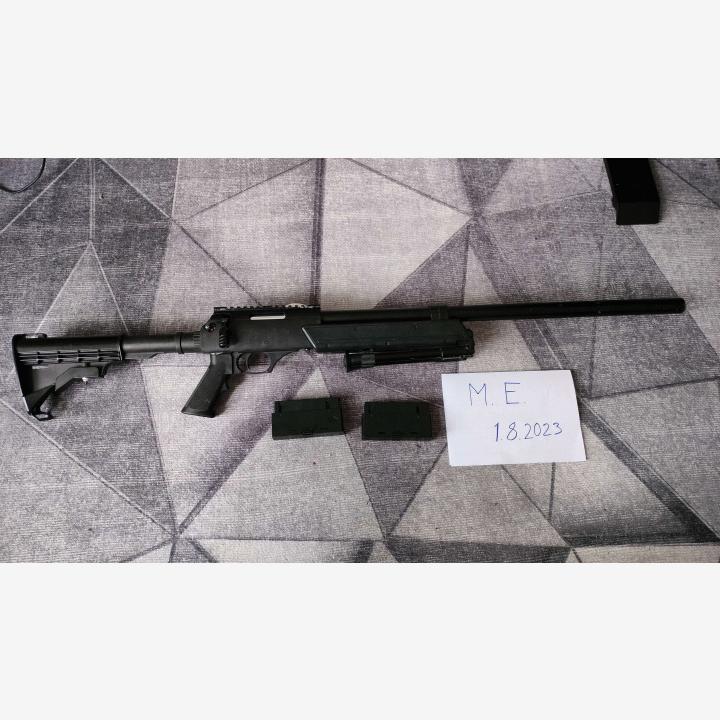 Tästä kaapin pohjalle jäänyt tarkkari. Soveltuu vaikka takapihan hauskanpitoon tai viikonloppupelailuihin.Vaihdettu uusi jousenohjain ja samalla sisuskalut rasvattu. Mukaan kaksi lipasta. Ei ole maailman tarkin tai pisimmälle ampuva muttei myöskään hinnalla pilattu.