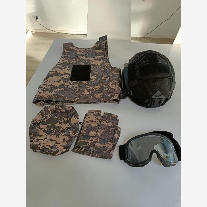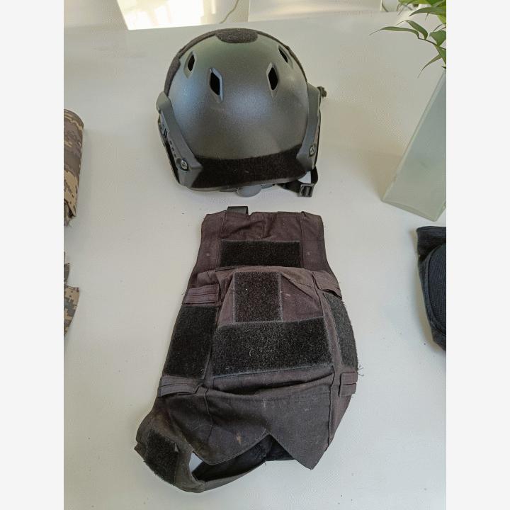-Kypärä + kypärän huppu, jossa tarrakiinnitykset.