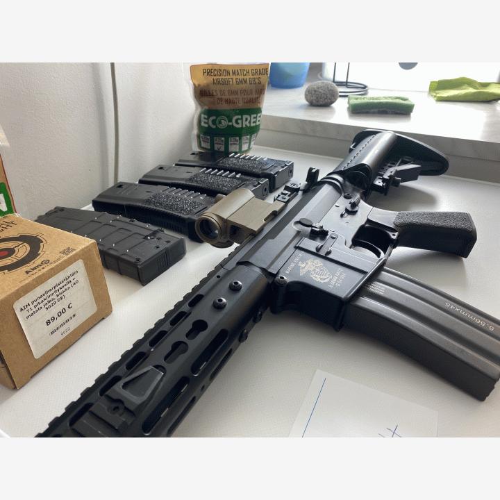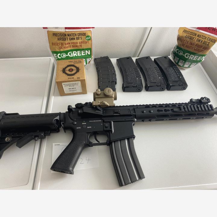 Kuin uusi, erinomaisesta laadusta tunnetun Specna Armsin valmistama akkutoiminen metallirunkoinen M4 malliston rynnäkkökivääri.