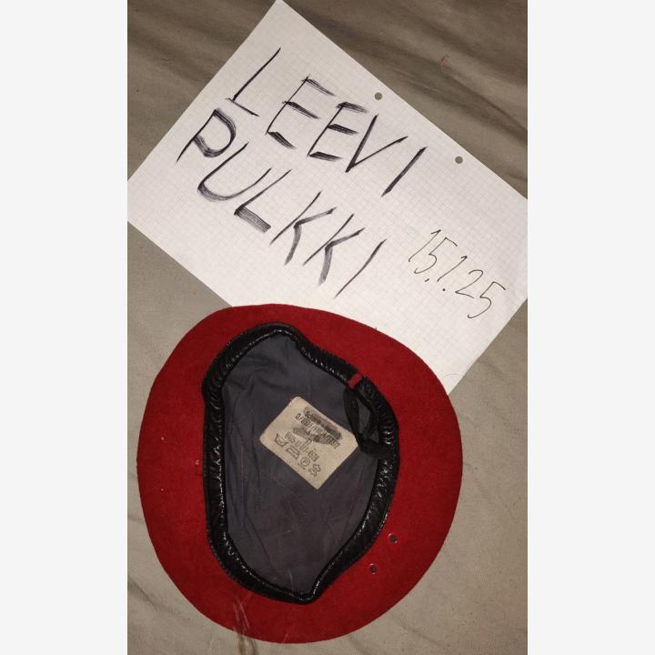 Myynnissä setti varusteita.-BW punainen baretti koko 61 10€