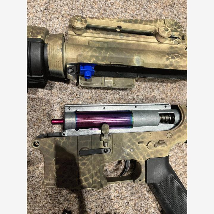 Specnan metallirunkoinen One-sarjan (E&C) M4. Ollut projektialustana ns. "aliexpress-buildille". Osat ovat vähintään sellaisia SHS-tasoisia tai SHS:ää eri nimellä ostettuna. Myydään projektikuntoisena, itselläni ei tällä hetkellä aika riitä. Muistikuvien mukaan mahdollisesti hopin tai syötön kanssa voi olla jotain ropaamista. Sisällä tällaiset osat:E&C pikajousenvaihdollinen boksi, johon tehty pyöristysviilaukset. 8 mm kuulalaakerit, spurrin alla Atom Custom 8mm liukulaakerit.