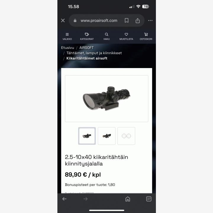 Mukaan yksi lipas, kantonauha ja bibod pelkkä tähtäin 50€ ase ilman tähtäintä ja bibodia 60€