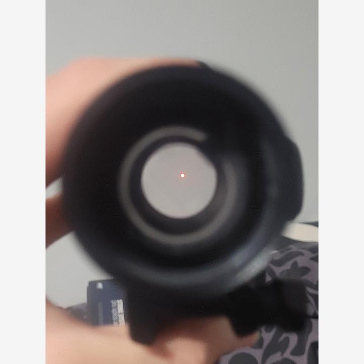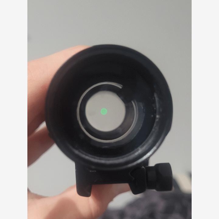 Tähtäin toimii, vähän on naarmua siellä täällä. Tähtäimessä on uusi patteri vaihdettuna
