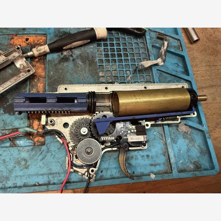 -titan syystä x luulee harjattomaks moottoriks ja ei anna laittaa aktiivijarrua, jousi sem verran kevyt että satunnaisia tuplalaukauksia tulee. Jollain pykälää tujulla jousella luultavasti korjaantuu. Tän voin vaihtaa jos haluut mettäpelirajoihin