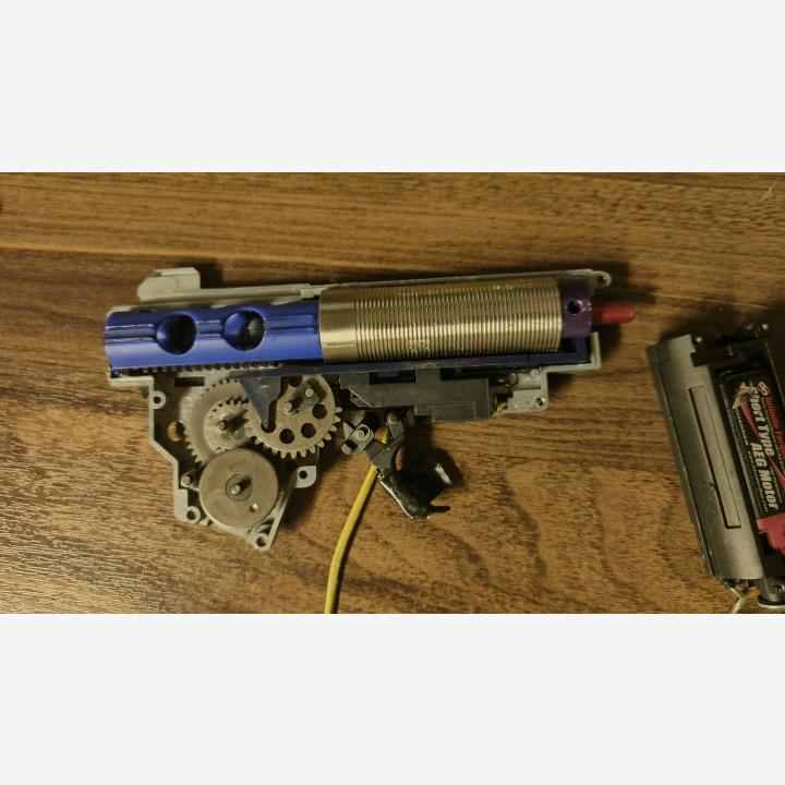 Myyntiin Aps UAR. Sisältä paranneltu kuvissa näkyvillä osilla. En ole varma mitkä ovat vakiokikkareita ja mitkä aftermarket osia. Näyttäisi ainakin kevennetty täysmetallihampainen mäntä, infinite torque moottori, jokin tarkkuuspiippu? ja prowinin hoppikammio löytyvän. Lisäksi ilmatiiveys puolella näyttäisi olevan päivitystä.