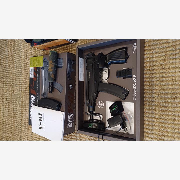 V-61 konepistooli (sähkötoiminen)ollut vielä pienemmällä käytöllä mukaan tulee 2 lipasta,akku, laturi ja joku itse väsätty äänen vaimennin