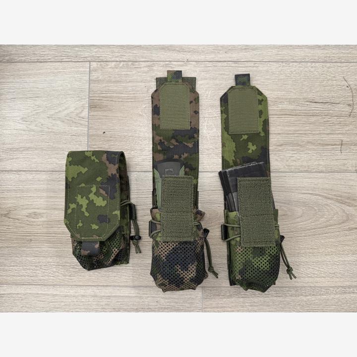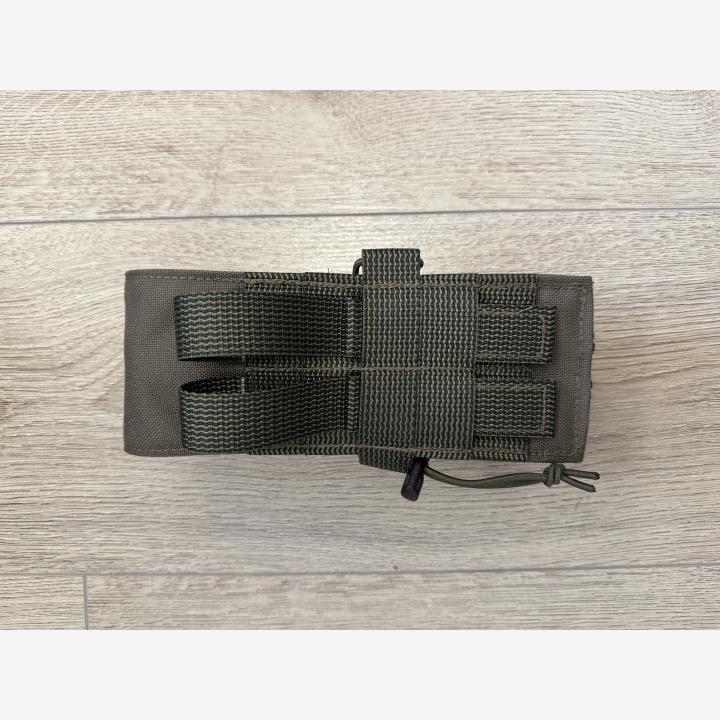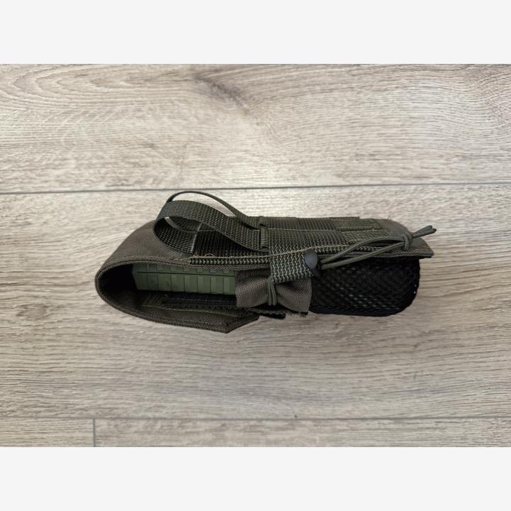 Kahden AR15/M4 lippaan läpällinen tasku. Vetää myös vaihtoehtoisesti yhden AK lippaan.Verkosta tehdyn pohjan myötä tähän taskuun menee kesällä myös Thermacell hyttyskarkotin. Laite tulee taskuun ”ylösalaisin” ja verkkokangas päästää vaikuttavan höyryn vapautumaan ilmaan.