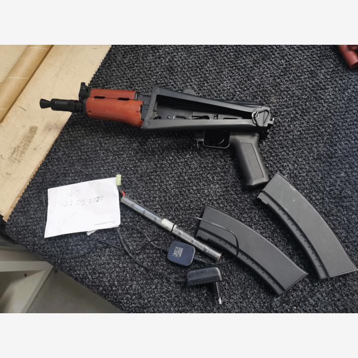 Hyvä cyman rynkky, akku, 2 lipasta ja laturi