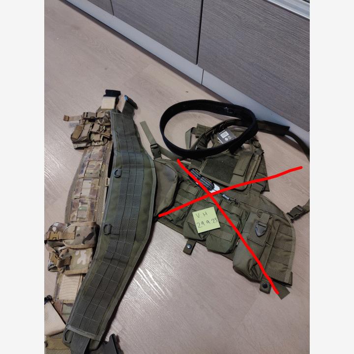 - oliivinvihreä Invader Gear taisteluvyö. Käytetty, hyvässä kunnossa. Vyön pitäisi säätyä ~80-130cm vyötärölle. Hinta 10€- TMC taisteluvyö värissä Multicam. Kopip Eagle Industriesin War Beltistä. Vyö on mielestäni hyvälaatuinen ja jämäkkä. Hyvässä kunnossa, kuvassa näkyy ainut vaurio. Koko ~L-XL. Sisävyönä britti ylijäämä vyö. Vyössä kiinni 8Fieldsin multicam taskuja. Kiväärilipastasku, 2x pistoolin lipastasku ja 2x kranaattitasku. Hinta 20€