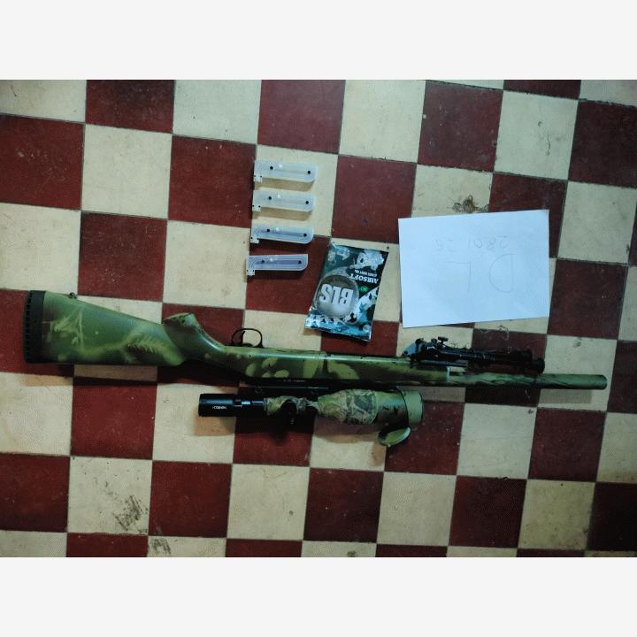 On kulunut jonkin aikaa siitä, kun olen päivittänyt ja käyttänyt sitä. Siksi en ole täysin varma piipun ja jousen merkistä. Mutta se ampuu erittäin hyvin ja on ollut aktiivisessa käytössä ja olen pitänyt siitä noin kaksi vuotta. Ennen kuin vaihdoin rynnäkkökivääreihin. Pisin osuma, jonka olen sillä saanut, on noin 130 metriä.