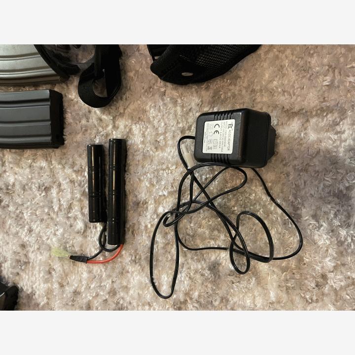 Tästä hyvä paketti airsoft harrastuksen aloitukseen, esimerkiksi nuorille innokkaille! Ase on ostettu noin 6v sitten Helsingin Proairsoft liikkeestä. Ase on ollut todella vähällä käytöllä, eikä siinä ole juuri käytön jälkiä. Aseen merkki on ASG, mallia en muista enää.Samaan laitan lasit, suu maskin, lippaita, lippaan täyttäjän, kuulapurkin sekä tietysti akku ja laturi. Tässä loistava paketti aloittelijalle, mutta miksei myös muillekkin.
