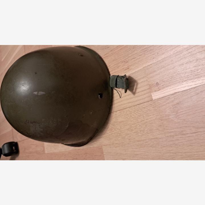 Puna-armejan kypärä vuoden 1946 malli joka on viellä puna-armejan malli eli arvokas ja WW2 mallin kypärä! Ja eroaa hieman neuvostoliiton malleista mitä tehtiin näiden jälkeen.Tämän kypärän käyttäjällä on ollut ikävä kohtalo ja todennäköisesti kuollut koska kypärän takana on joko luodin tai sirpaleen reikä kuvasta näkee.Sijainti Salo,Pertteli