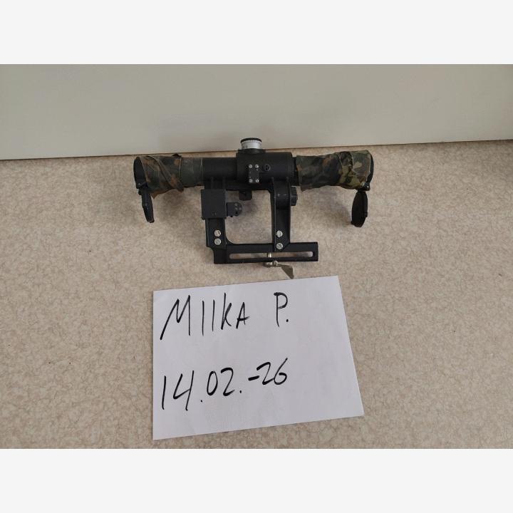 Hyväkuntoinen, mukaan linssinsuojat.Etumaisen linssinsuojan sisään asennettu nätisti polykarbonaattilevy suojaamaan kuulan osumilta.