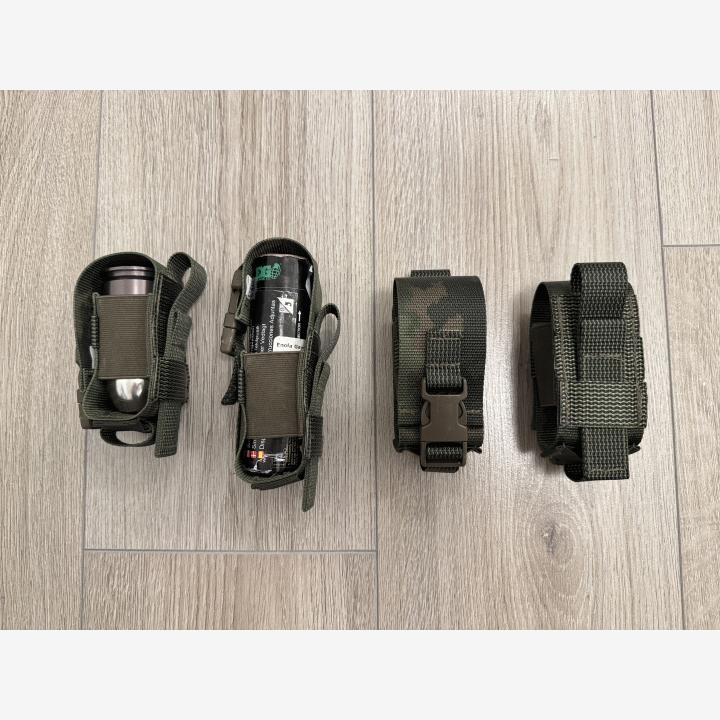 M05 kuosisia taskuja 40mm kranaatille tai ihan mille tahansa noin 40mm halkasijaltaan ja max 140mm pitkälle esineelle. Kyljet jämäkkää joustonauhaa, eli hieman paksummankin esineen saa ängättyä, mutta ei enää niin mukavasti.Läpän korkeus on siis säädettävä, eli näihin menee airsoft kontekstissa kaikki lyhyistä 40mm kranuista Enolan savuihin, sekä tietysti esim. Paladin hylsyt ja panokset.