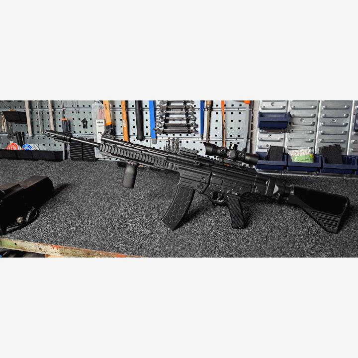AGM StG44 modernisoituTästä 3d printtaus projekti. Mahdollista palauttaa normaaliksi muutamaa läpireikää poislukien.