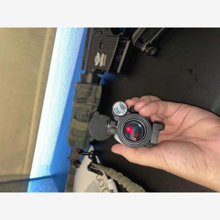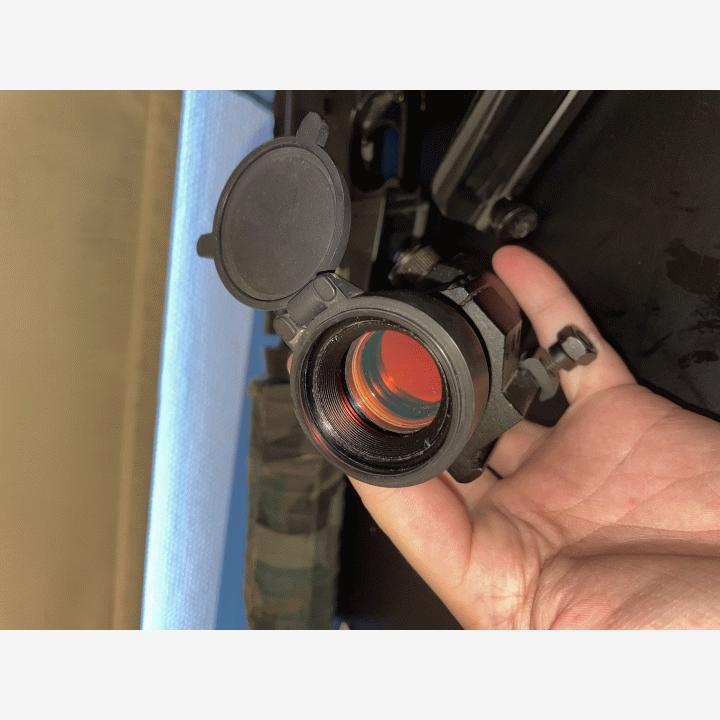 Tähtäimessä on todella pieniä naarmuja mutta eivät ole niin suuria että se haittaisi näköä.