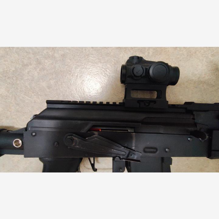 Päällä vectoroptics maveric gen 3 ritilällä(uudenveroinen). Tukki joku laadukkaan tuntuinen magpul moe kopio. Aito bcm keymod grippi ja 7kpl e&l mustia midcappeja(lähes käyttämättömiä) jotka istuu tosi hyvin tähän. Lipaskuilussa on myös se lctn palikka.