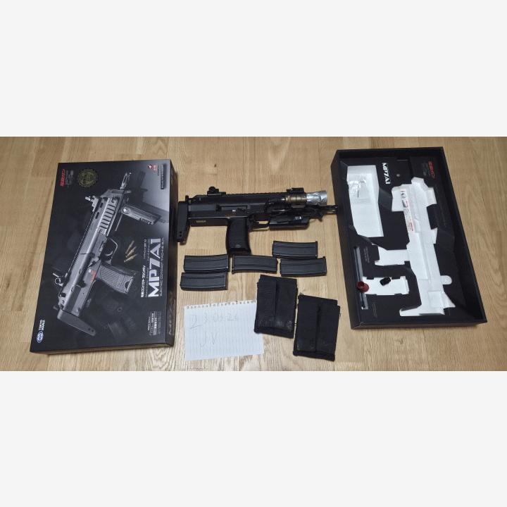 Hyvässä kunnossa oleva maruin mp7a1, 5 lipasta ja 2 lipastaskua joihin mahtuu 2 lipasta kumpaankin.Aseeseen lisätty geneerinen lamppu joka ei ole erityisen kirkas mutta ihan hyvä varsinkin hämäriin sisätiloihin.
