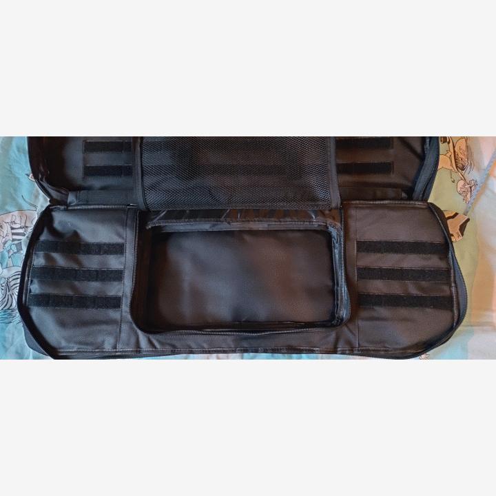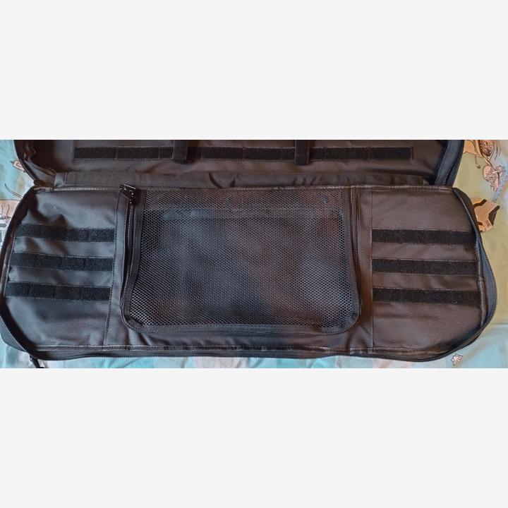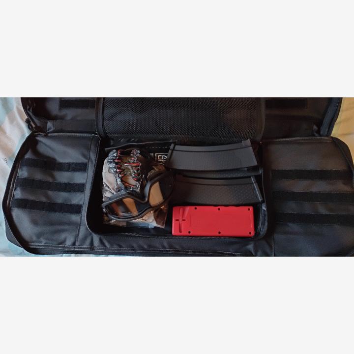 Myydään käyttämätön specna armsin aselaukku. Laukun materiaali tuntuu erittäin hyvältä ja kestävältä. Laukusta löytyy edestä velcro paneelia, pientä säilytystilaa ja päältä kantokahva. Takana on kaksi hihnaa jotka mahdollistavat laukun kantamisen reppuna.Sisältä löytyy 77cm pitkä ja 28cm korkea aseen säilytystila neljällä velcro hihnalla jotka pitävät asetta paikallaan. Sisällä on myös verkollinen säilytystila jota voi suurentaa ulkopuolella olevalla vetoketjulla. Kuten kuvassa näkyy niin sinne saa mahdutettua ainakin alakasvomaskin, suojalasit, kuulapussin, 4 ak lipasta ja isomman speedloaderin jotka eivät tule laukun mukana taikka ole myynnissä ne ovat vain näyttämässä mitä laukkuun mahtuu. Velcropaneelissa olevat hihamerkitkään eivät tule mukana tai ole myynnissä.