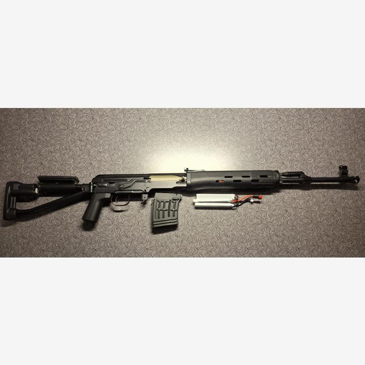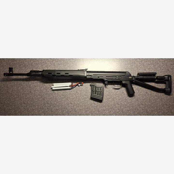 Cyman sähkö CM.057S SVDS, jota hieman piristetty. Kamu viime vuoden alkupuoliskolla harrustuksesta kiinnostuneena tän hommas ja innostus lajiin sitten talven tultua lopahti. Eli hänen toimeksi annollaan tämän myyn.Sisäänsä tämä on syönyt, jotain parempaa. En tällä hetkellä muista mitä. Pyssykässä, kuitenkin edellisen omistajan toimesta GATE:n ASTER. Viimein kronolle pääsin jonka mukaan tää lingottaa 0.39 mittua 2.3-joulen +/-0.02j heitolla.