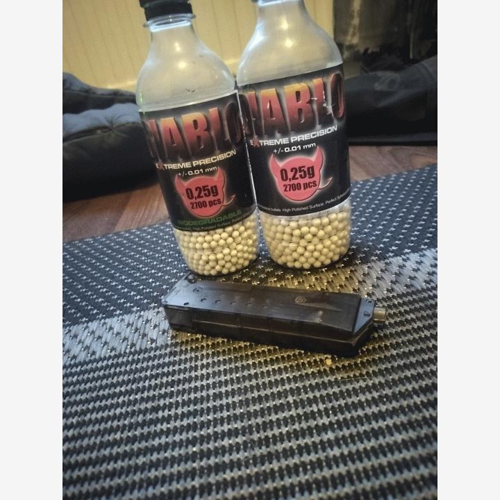 Myydään hyväkuntoinen airsofti käytönpuutteen johdosta eteenpäin sitä tarvitsevalle. Pyssy on hyvässä kunnossa, ja toimii moitteetta. Miinuspuolia ovat pyssyssä ne, että piippu on ottanut hieman osumaa jostain, ja siksi siinä on vähän naarmuja. Kiikari on alkuperäinen, eikä mikään paras, joten se on epätarkka, mutta sen kanssa olen ainakin itse tullut toimeen. Pyssyssä on myös tukijalat, kuten kuvista näkyy. Lippaaseen menee noin 10-15 kuulaa kerrallaan. Kaupan päälle mukaan tulee speed reloaderi ja 2kpl vajaita pulloja 0.25g painoisia kuulia. Hinta ei ole kiveen hakattu ja osaava tinkii itselleen mieleisen hinnan.