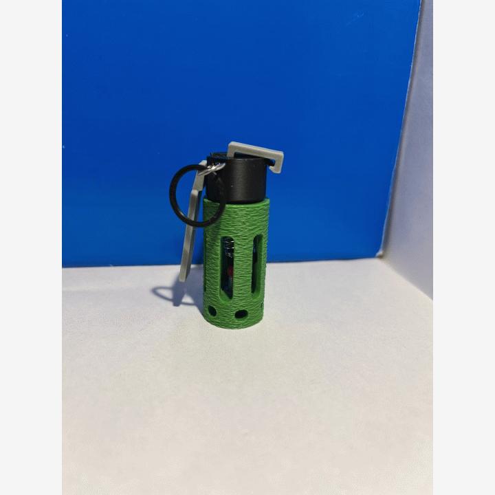 Pieni nalliaseen nallilla toimiva 3D tulostettu kranaatti. Esim. avaimenperäksi. nalli räjähtää, kun sokka on vedetty irti ja kranaatti kolahtaa maahan. myynnissä myös nallipaketteja hintaan 3€/kpl. Paketista saa 144 käyttökertaa kranaatille.
